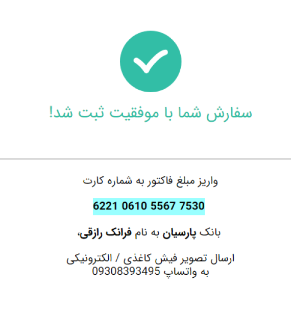 تمام شد لطفا شماره کارت برای واریز هزینه فاکتورتون رو یادداشت کنید